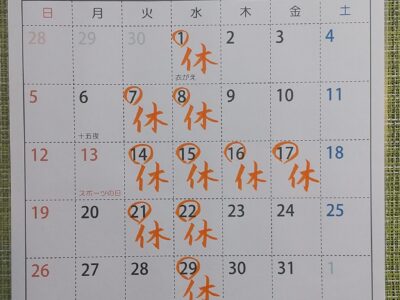 ★連休(火・水)が2回あります。(4月1日2日・15日16日)